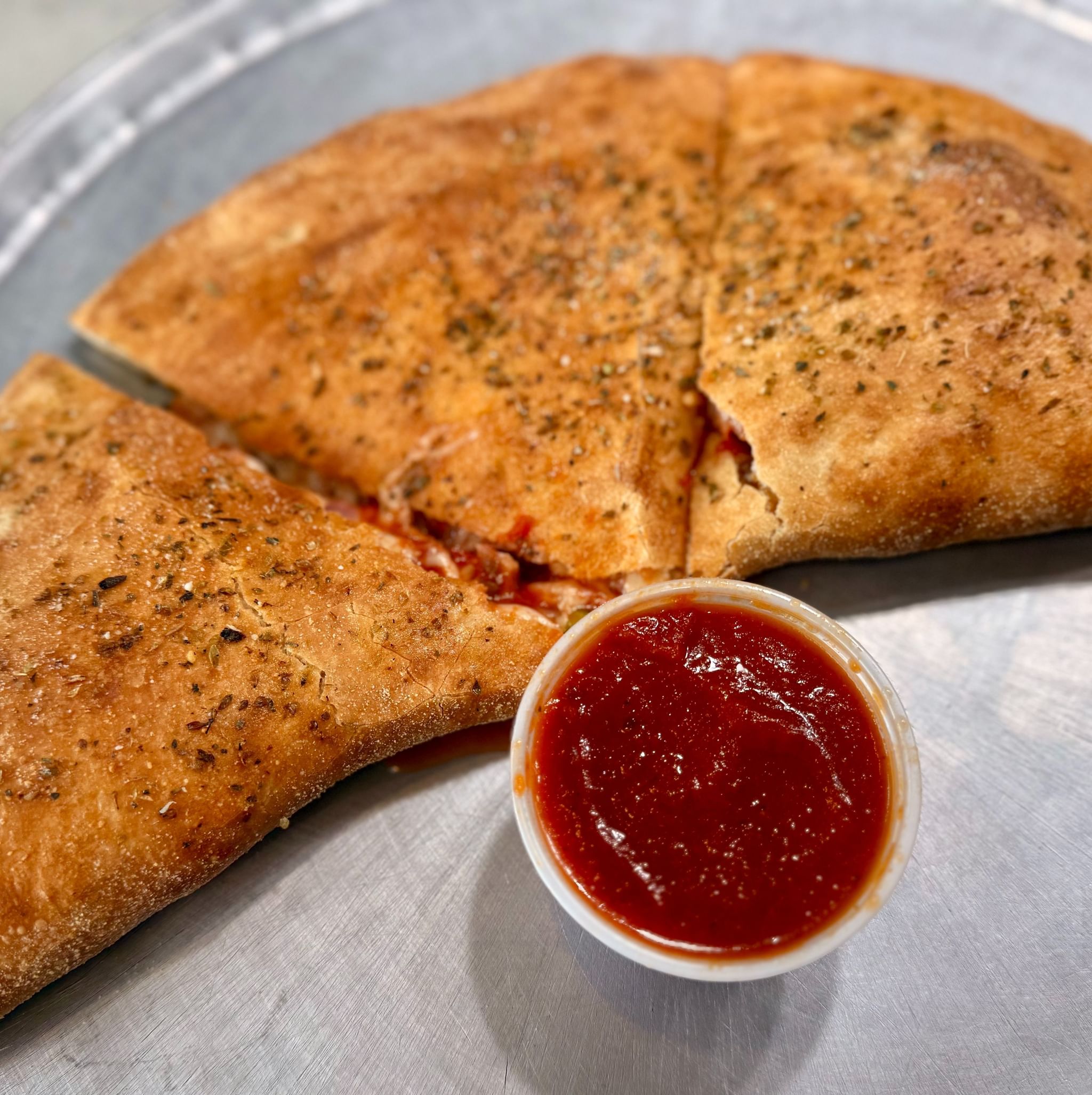 *New* Large baked pizza turnover served with sauce on the side, made with your choice of 3 toppings (limit 3): Pepperoni, Sausage, Ham, Bacon, Chicken, Meatball, Mushrooms, Onions, Peppers, Spinach, Broccoli, Black Olives, Jalapeño