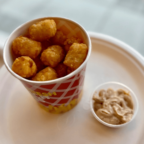Cup of crispy tater tots with your choice of chipotle mayo, honey mustard or ranch