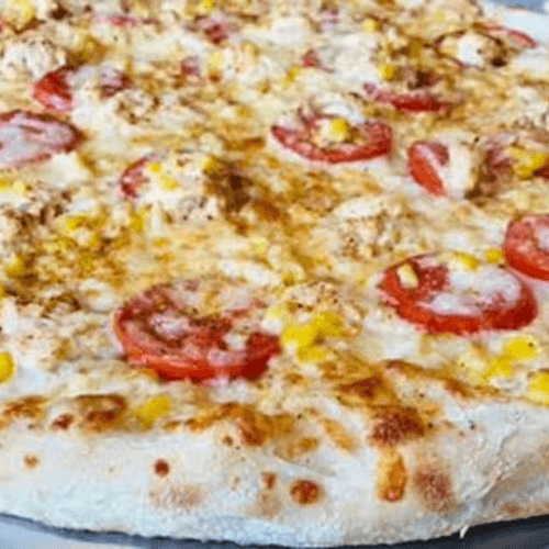 18 inch specialty pizza with BBQ chicken breast, Mozzarella, and Cheddar