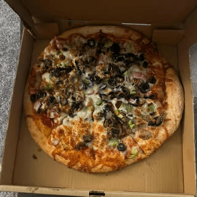 Pepperoni, Italian sausage, mushrooms, green peppers, onions, ground beef, and black olives