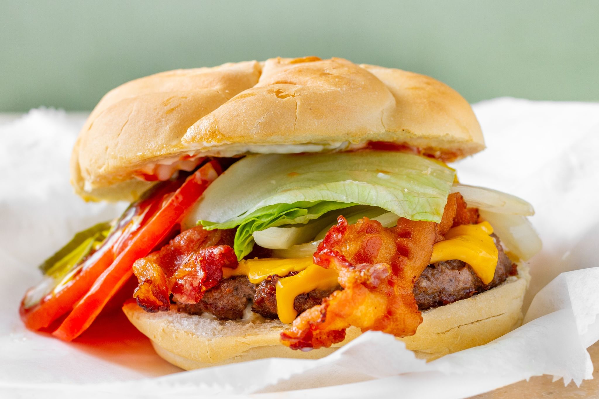 Delicious cheeseburger topped with fresh crispy bacon