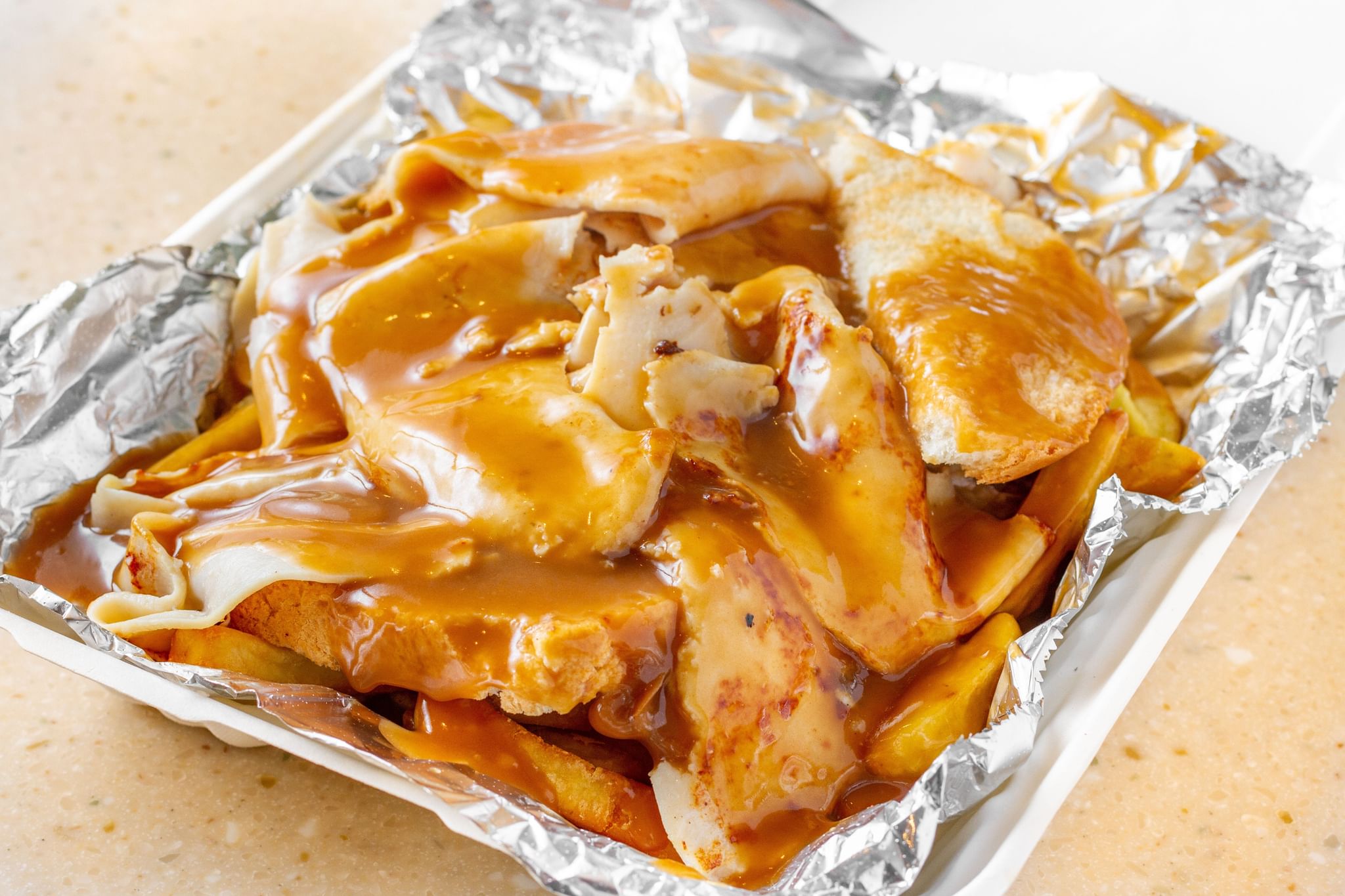 Fries. Pizza sauce. Shredded mozzarella cheese. A glorious mashup of the world's best foods