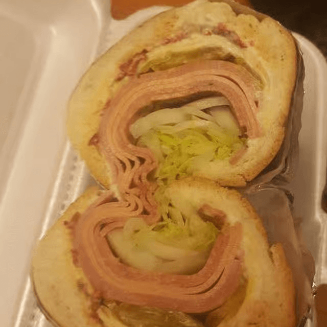 Mixed greens, lettuce, tomato, onions, cucumbers, turkey, ham, provolone, American cheese, and a hard-boiled egg