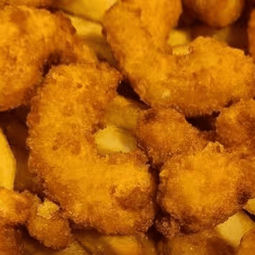 2 pieces of fish, 5 jumbo shrimp, and 7 baby shrimp