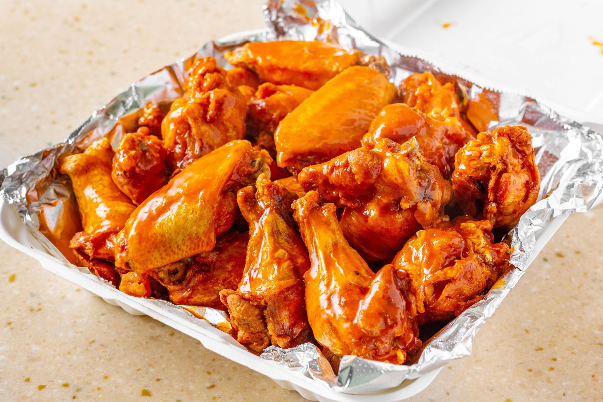 Served with blue cheese or ranch dressing. 50 and 100 wings served on a party tray